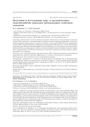 - Богатов, Н.М., Нестеренко, И.И., Скачков А.Ф., О проблемах создания четырёхкаскадных солнечных элементов с согласованной кристаллической решёткой. Экологический вестник научных центров Черноморского экологического сотрудничества, 2017, №4, с. 74–80. [Bogatov, N.M., Nesterenko, I.I., Skachkov A.F., On the problems of creating four cascade solar cells with a consistent crystal lattice. Ekologicheskiy vestnik nauchnykh tsentrov Chernomorskogo ekonomicheskogo sotrudnichestva = Ecological Bulletin of Scientific Centers of the Black Sea Environmental Cooperation, 2017, no. 4, pp. 74–80. (in Russian)] EDN: ZXPYNT
