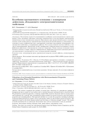 Телятников, И.С., Павлова, А.В., Колебания протяженного основания с планарными дефектами, обладающего электромеханическими свойствами. Экологический вестник научных центров Черноморского экономического сотрудничества, 2025, т. 22, № 4, pp. 37–44. DOI: 10.31429/vestnik-22-4-37-44