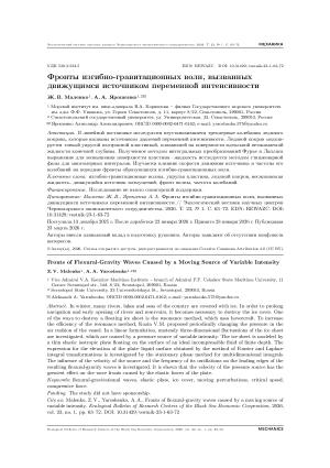 - Ярошенко, А.А., Маленко Ж.В., Неустановившиеся трехмерные изгибно-гравитационные волны, вызванные движущимися возмущениями переменной интенсивности. Экологический вестник научных центров Черноморского экономического сотрудничества, 2023, т. 20, № 1, с. 41–51. [Yaroshenko, A.A., Malenko Zh.V., Unsteady three-dimensional flexural-gravity waves caused by moving disturbances of variable intensity. Ehkologicheskij vestnik nauchnykh centrov Chernomorskogo ehkonomicheskogo sotrudnichestva = Ecological Bulletin of the Scientific Centers of the Black Sea Economic Cooperation, 2023, vol. 20, no. 1, pp. 41–51. (in Russian)] DOI: 10.31429/vestnik-20-1-41-51